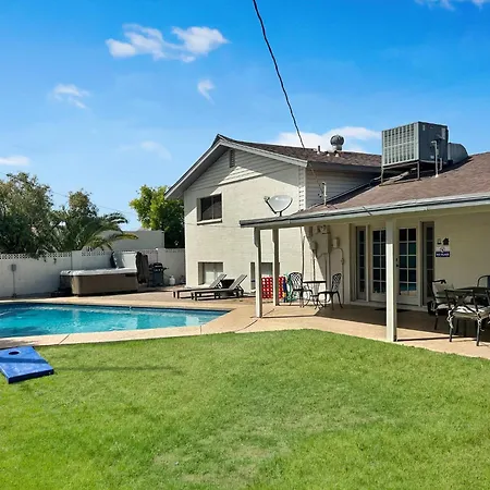 La villa Desert Pearl: Hot Tub For 8 + Pool + By Games Scottsdale si trova a 5 minuti a piedi da Saint Maria Goretti Catholic Church e dispone di una piscina all'aperto e di una terrazza per un soggiorno rilassante. Dotata di Wi-Fi, questa casa vacanze si trova a 2 km da Chaparral Park.
