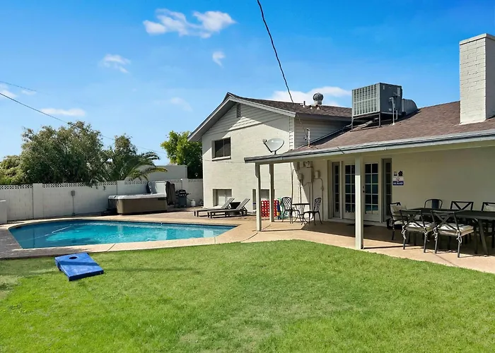 Questa villa con 6 camere da letto si trova a 25 km dall'aeroporto Internazionale di Phoenix-Sky Harbor e a circa 10 minuti in macchina da punti di interesse culturale come il McCormick-Stillman Railroad Park. Gli ospiti troveranno il Paolo Soleri a 6 km dalla villa Desert Pearl: Hot Tub For 8 + Pool + By Games, mentre il Phoenician è a 4 km. Situata vicino a Glass and Garden Community Church, questo stabilimento è una destinazione popolare sia per i fedeli che per i turisti.